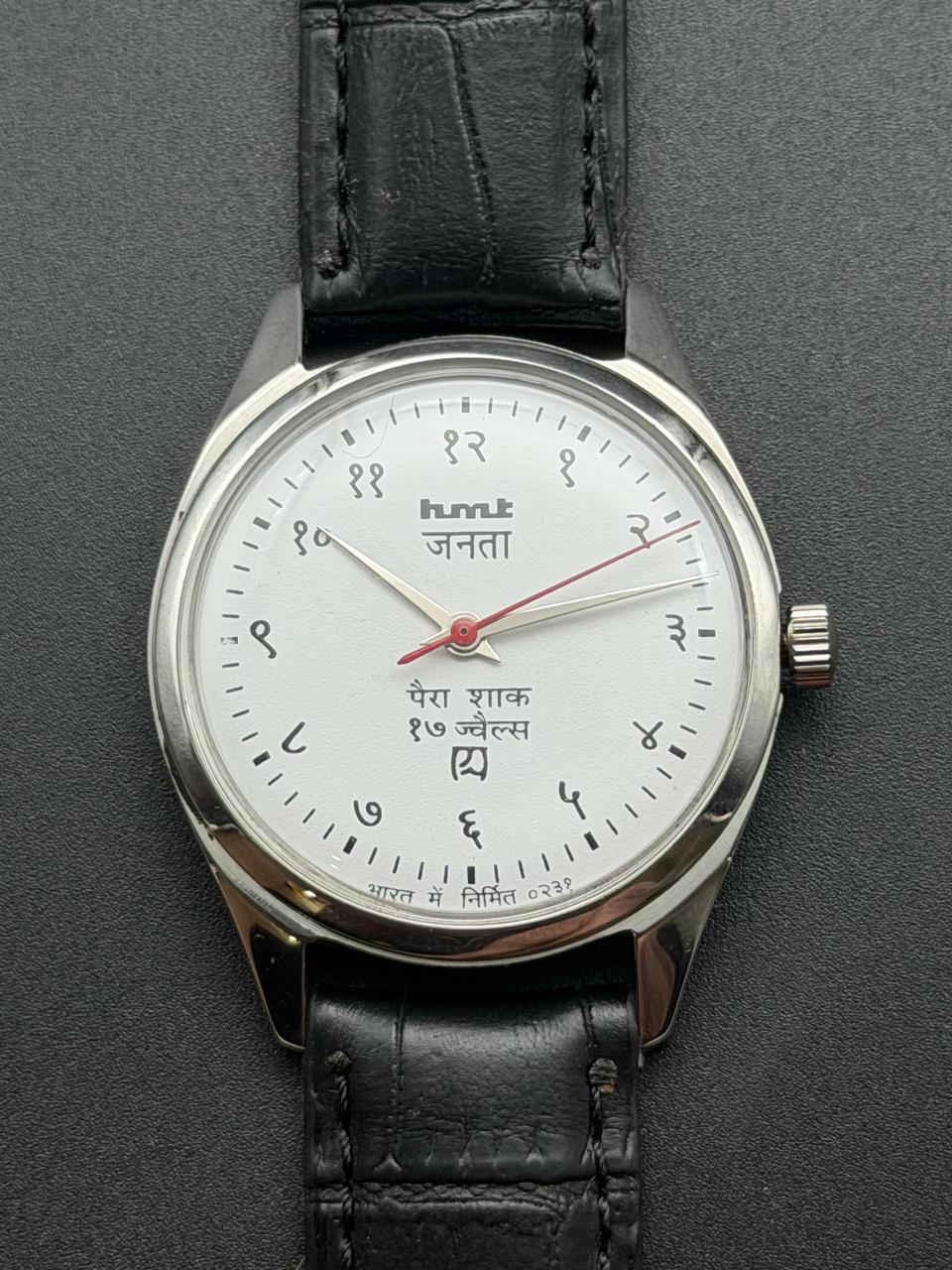 Vintage HMT Janata Hindi White dial mechanical Hand winding Dial 17 Jewels Men’s Wrist Watch